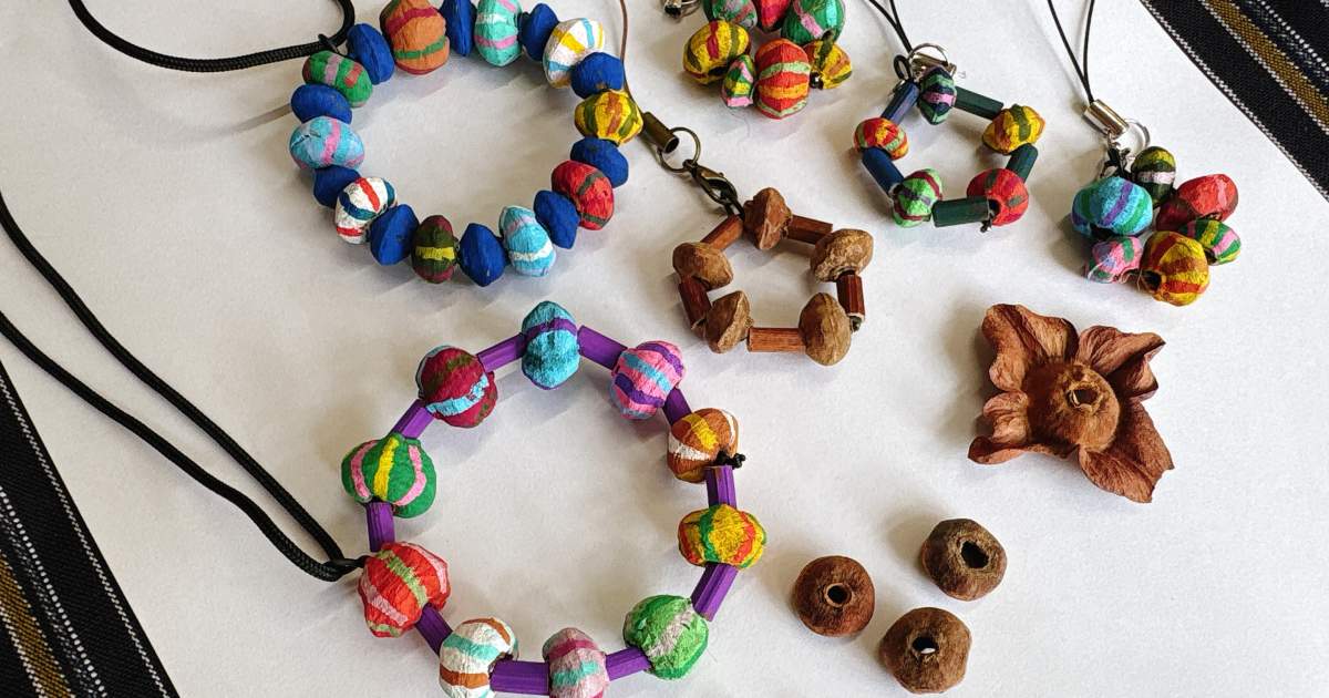 自然素材で作るアクセサリー。まるで会津木綿のように木の実・植...